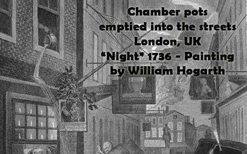 Did you know that before toilets and outhouses people would dump their waste (chamber pots) in the public streets? In NYC 100 people in a building would share 4 outhouses. Can you imagine the smell in NYC? Well, now you know.